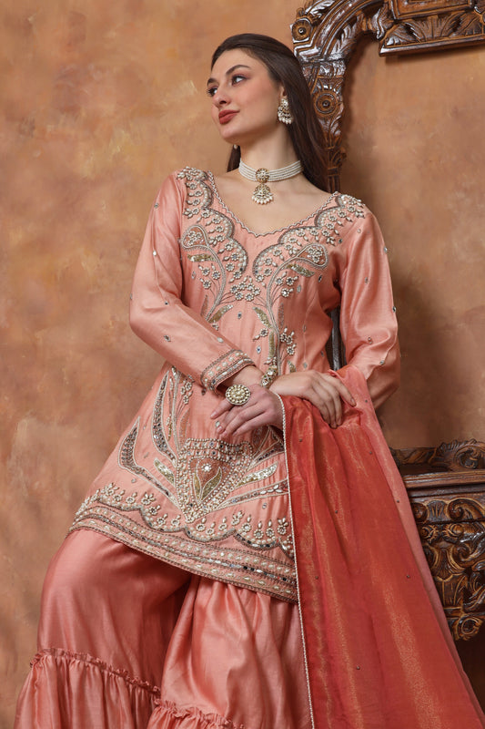 Pearl & Mirror Work Sharara Suit - OLD ROSE