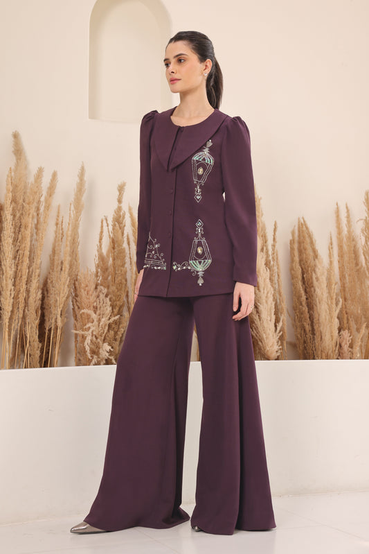 Ready To ShipsSconce Co-ord Set With Flared Pants - PURPLE