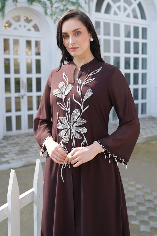 Ready To ShipsSeed Pearl U-cut Kurta Set - BROWN