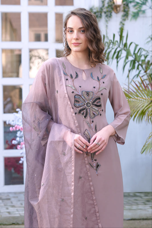 Seed Pearl Batwing Kurta Set - DUSTY ROSE