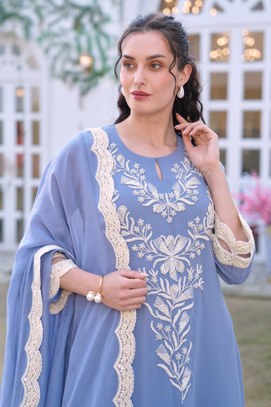 Ready To ShipSeed Pearl Georgette A-line Suit - DUSTY BLUE
