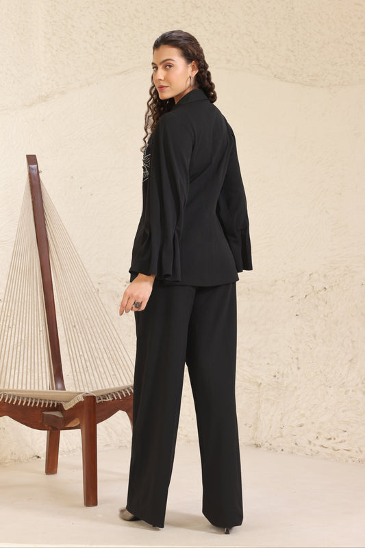 Ready To ShipVelvet Farshi Suit With Beads Embroidery - BLACK