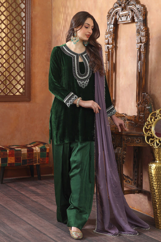 Silk Velvet Farshi Suit With Pearl Embroidery