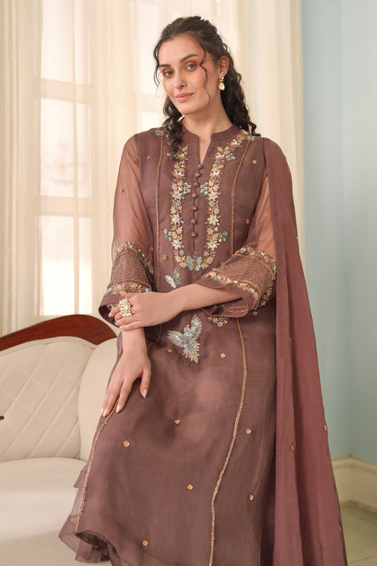 Ready To ShipSeed Pearl U-cut Kurta Set - BROWN