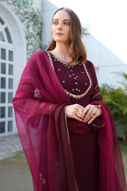 Ready To ShipGeorgette Suit With Gota Patti Embroidery - WINE
