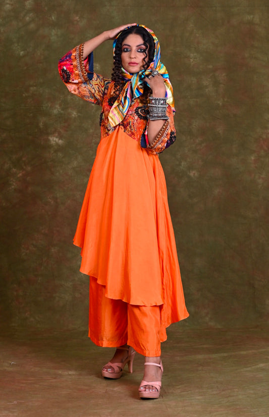 Asymmetric Silk Kurta With Culottes