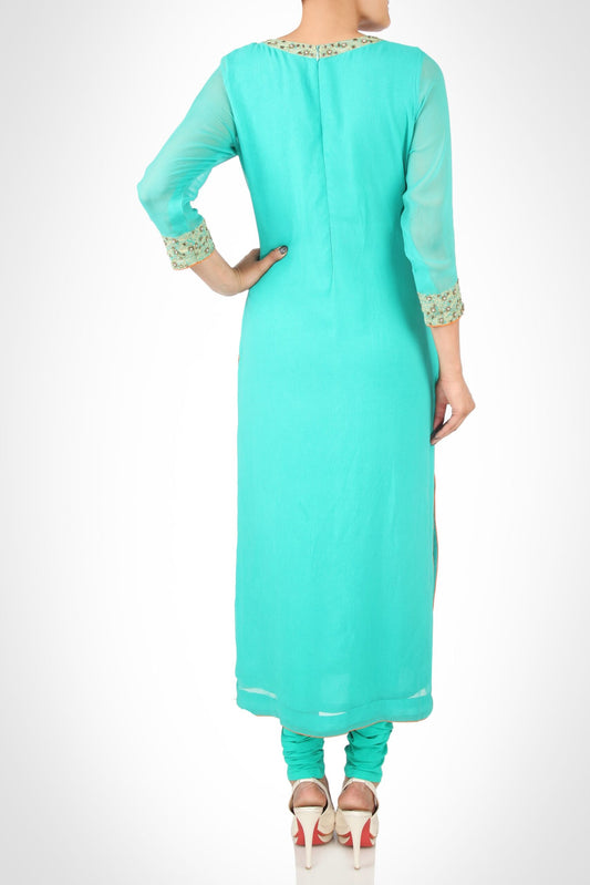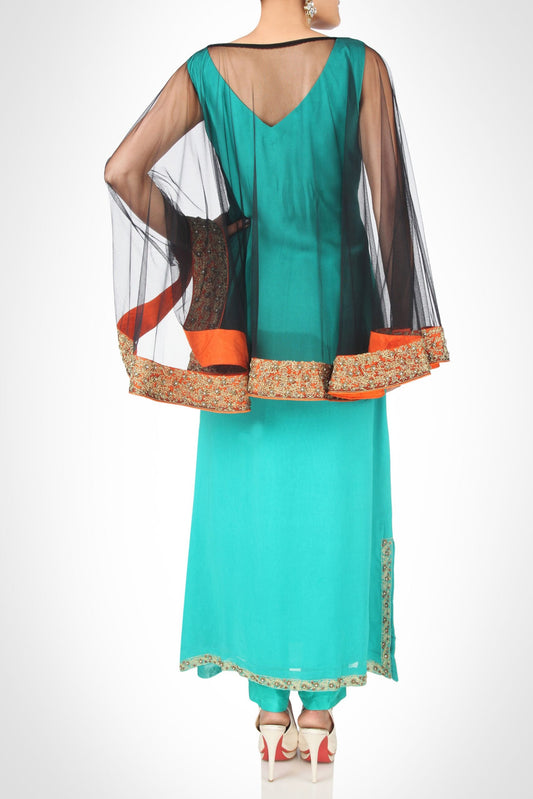 Georgette Kurta with Embroidered Poncho