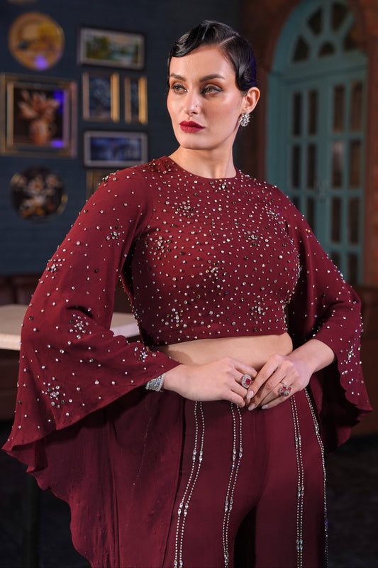 Ready To ShipsAngel Sleeves Crop Top With Flared Pants - MAROON