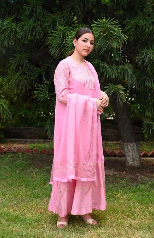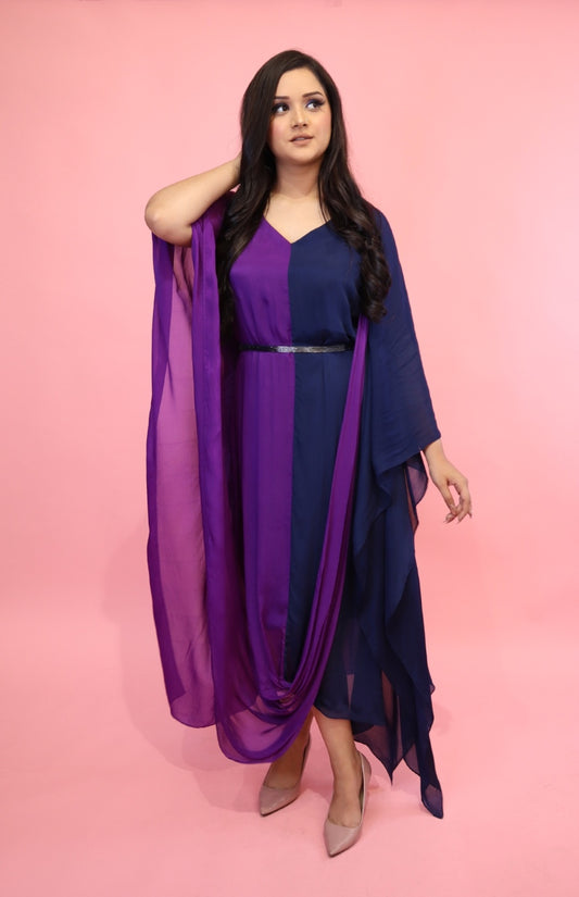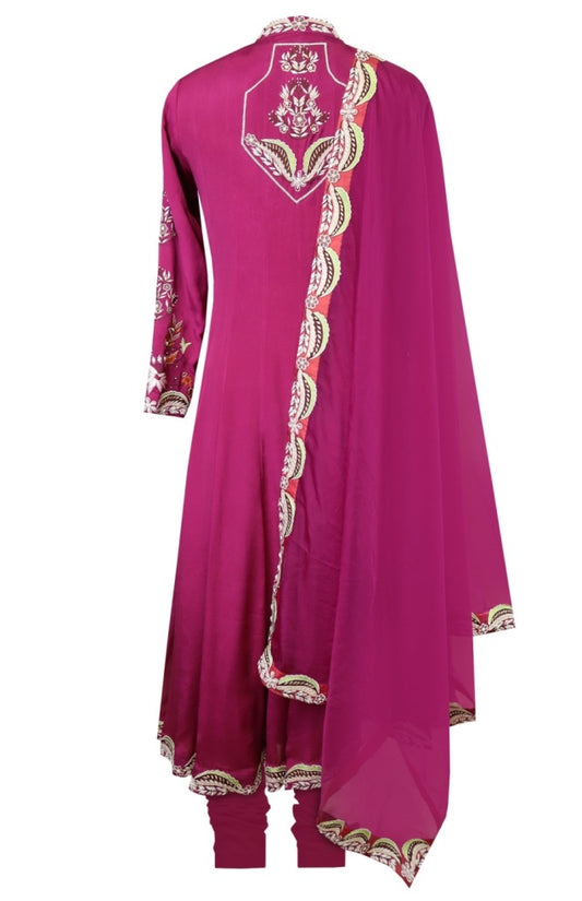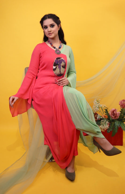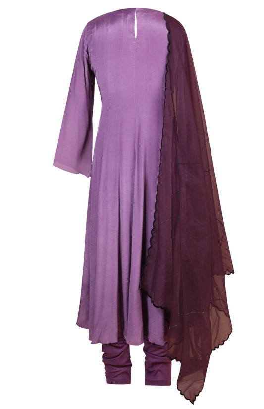 Ready To ShipsChiffon Anarkali With Ombré Dupatta - WINE