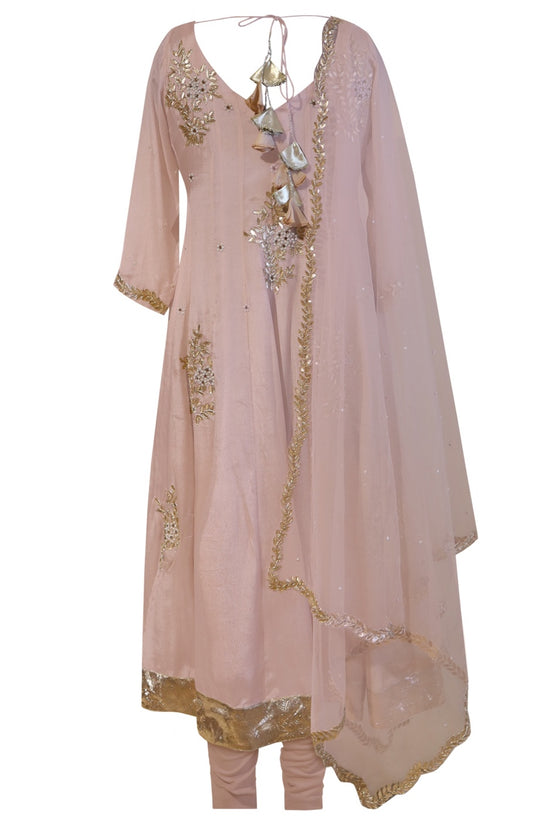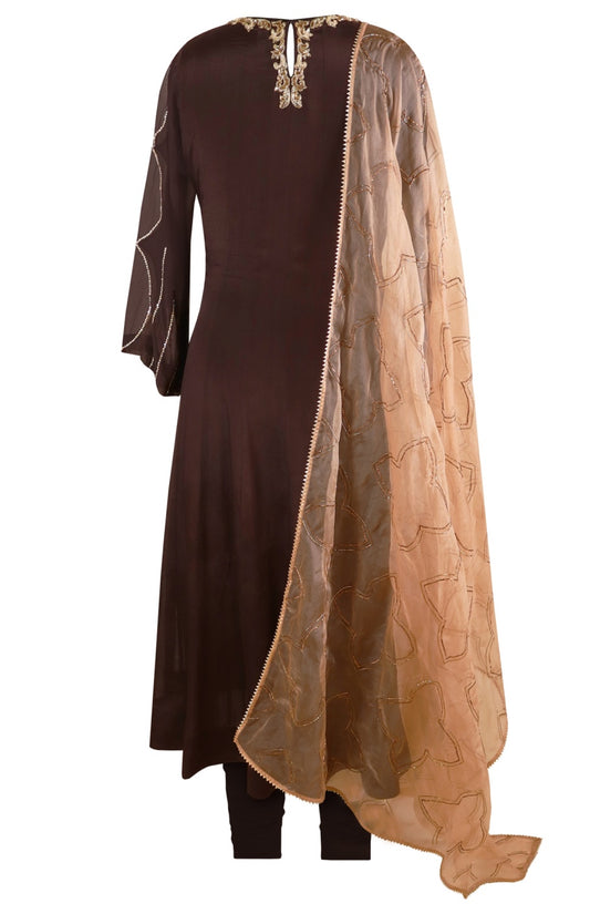 Chiffon Anarkali With Organza Dupatta - BROWN