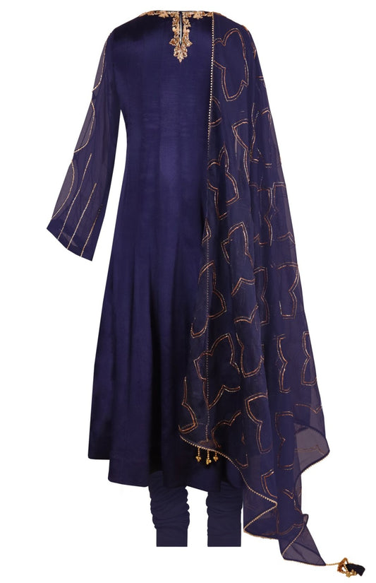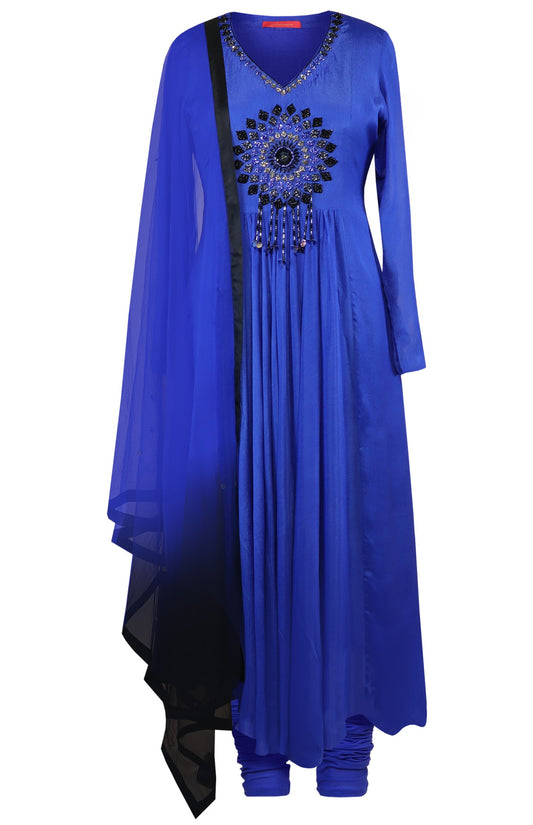Chiffon Anarkali With Aari Embroidery - INDIGO