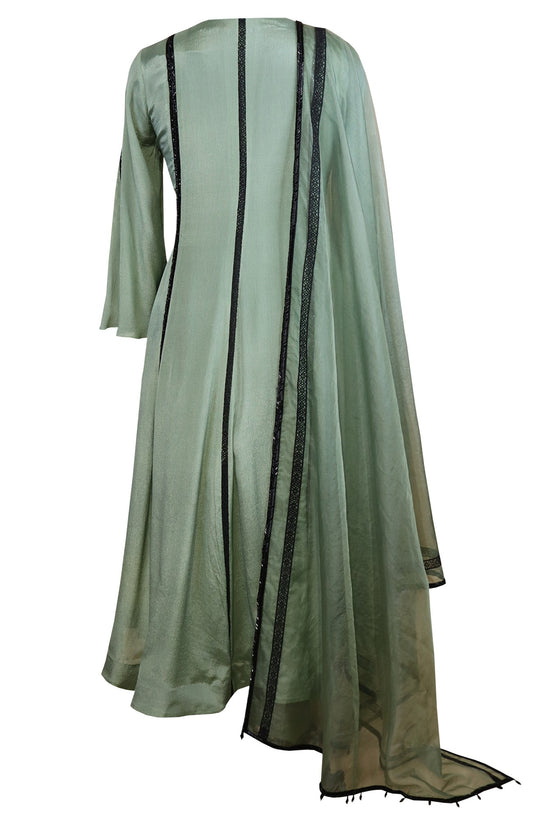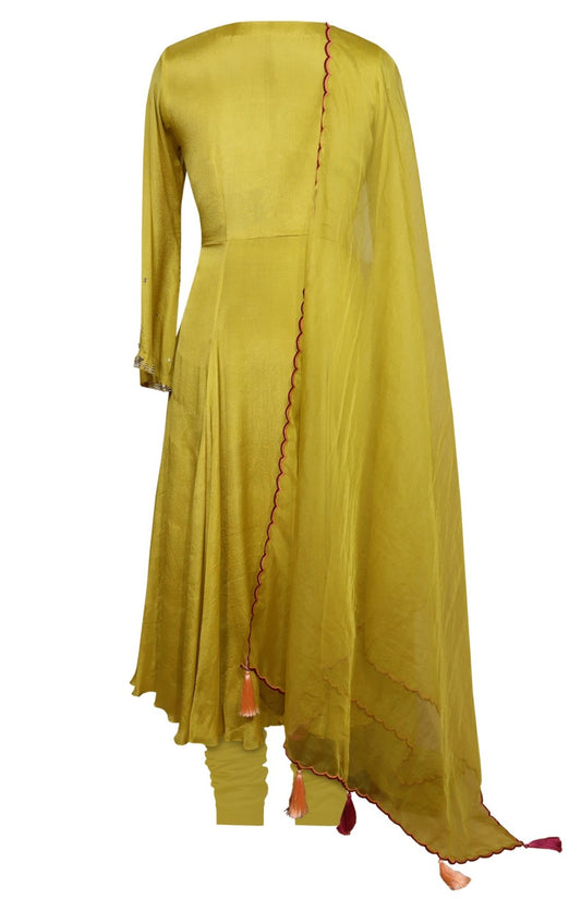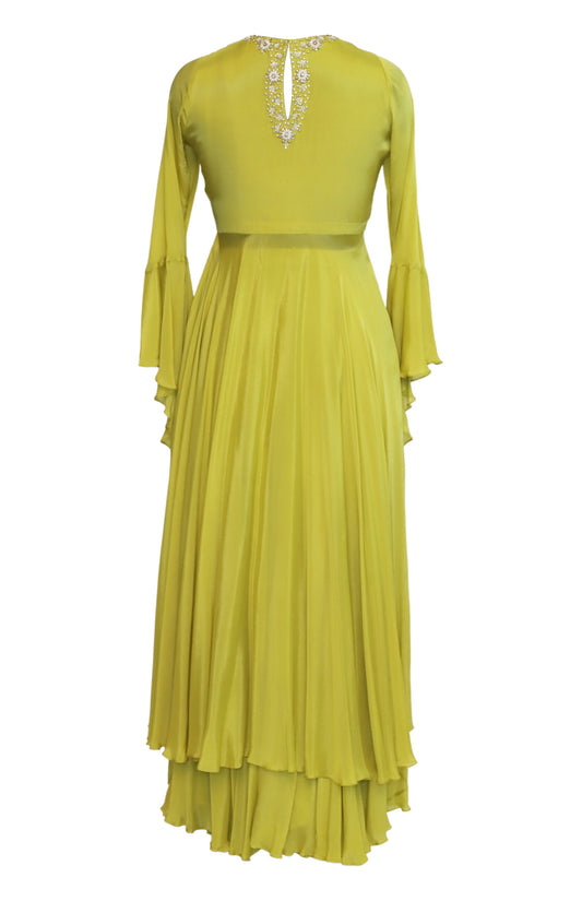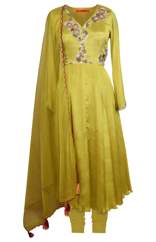 Ready To ShipChiffon Anarkali With French Knots - GOLDEN OLIVE