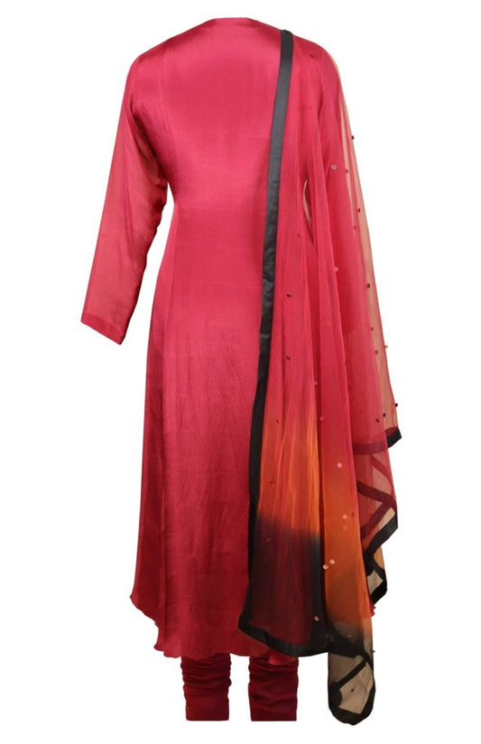 Ready To ShipChiffon Anarkali With Ombré Dupatta - WINE