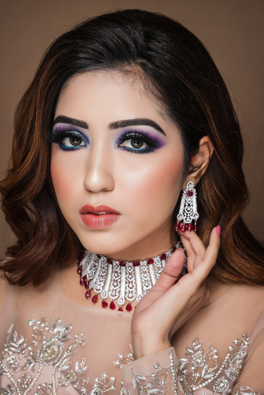 Ready To ShipCrop Top Skirt With Embellished Jacket - PURPLE