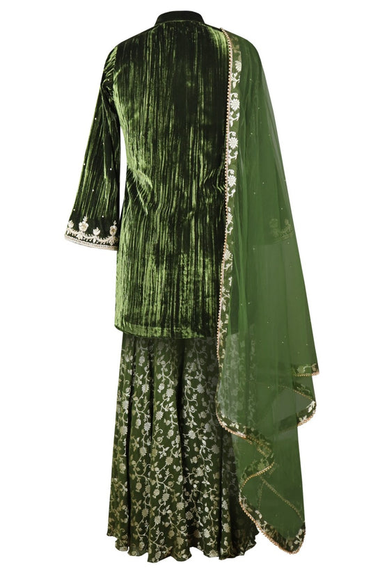 Ready To ShipsDaisy Colour Block Kurta Set - OLIVE