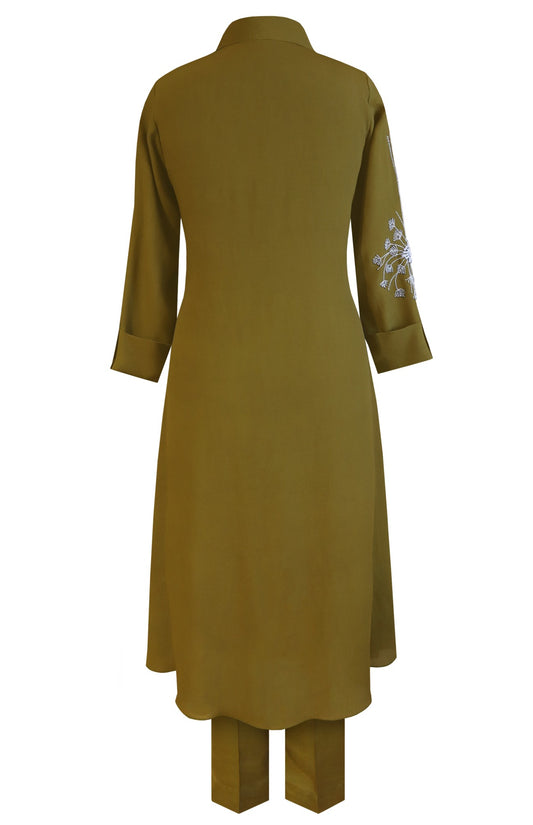 Ready To ShipDaisy Kurta Set With Shawl Collar - OLIVE
