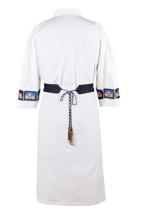 Denim Patches Shirt Dress - WHITE