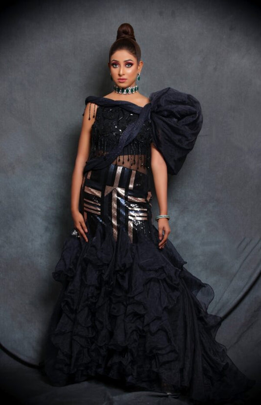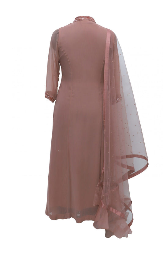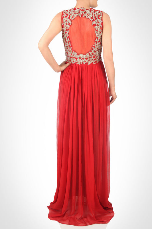 Floor Length Pleated Dress With Zardozi Embroidery - MARSALA