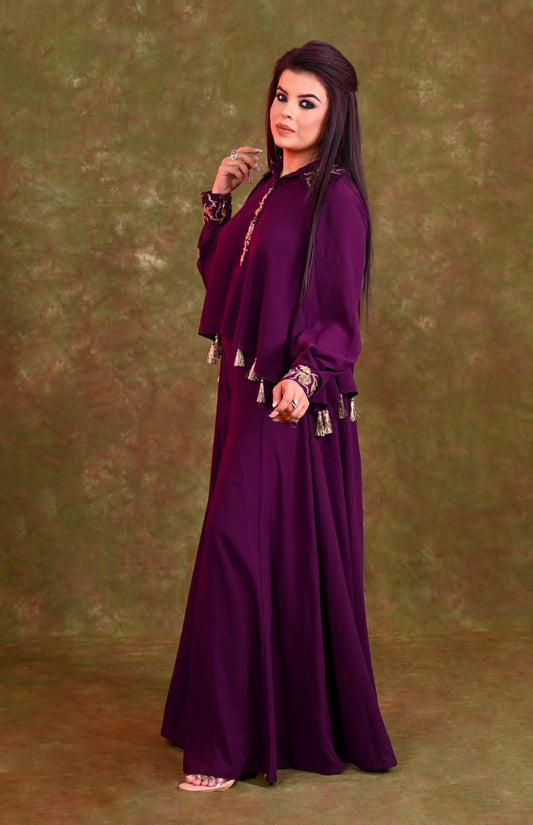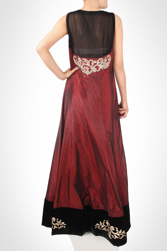 Floor Length Jacket With Zardozi Embroidery - MARSALA