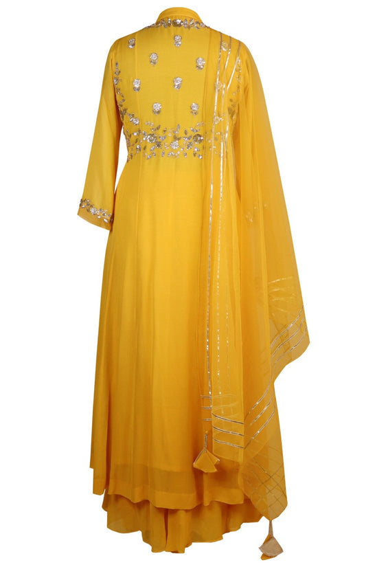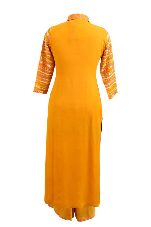 Georgette Kalidar Suit With Sequins Embroidery - MANGO YELLOW