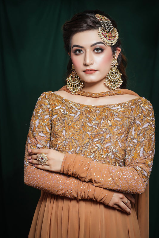 Georgette Maxi With Zardozi Embroidery - MARSALA