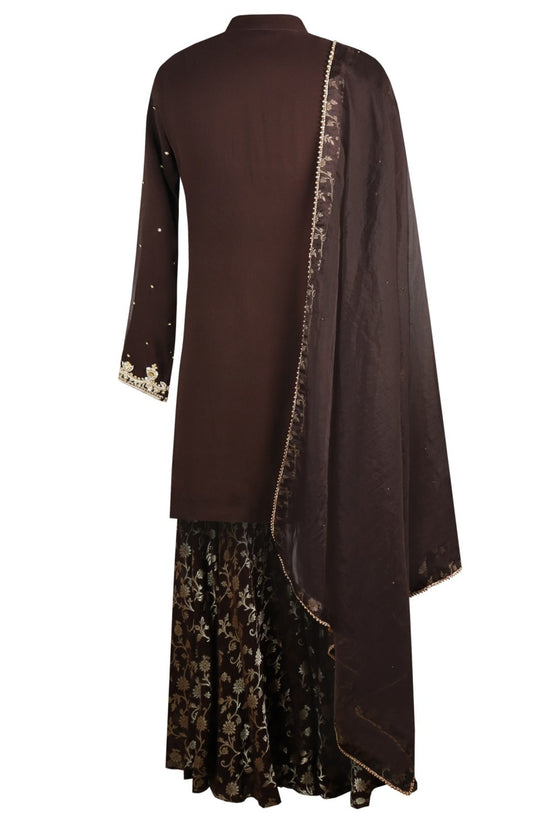 Georgette Short Shirt With Banarsi Sharara - BROWN