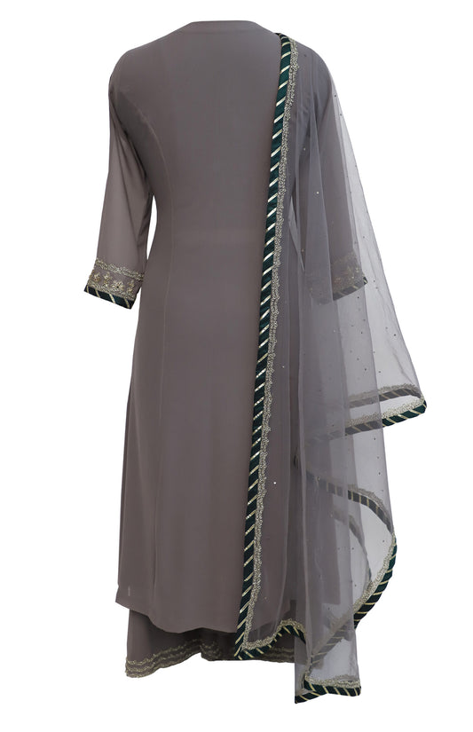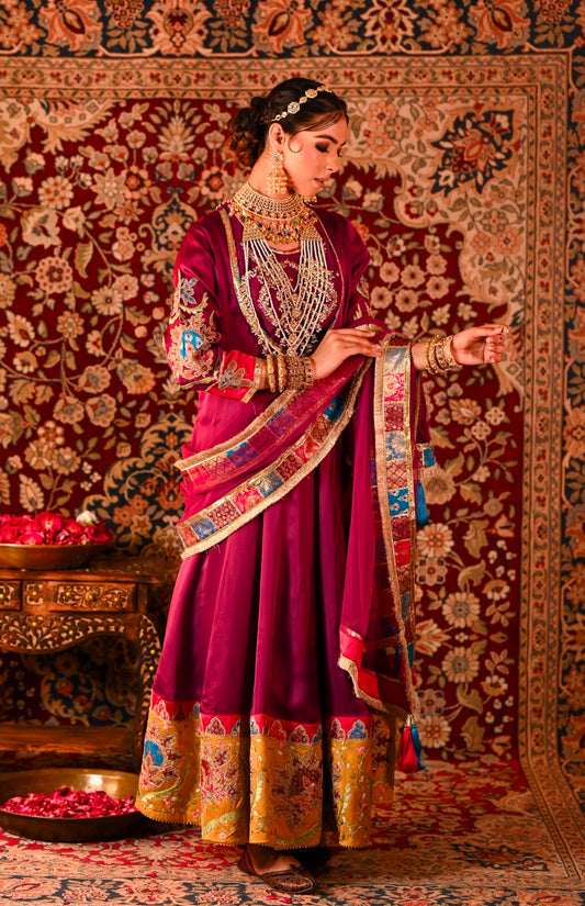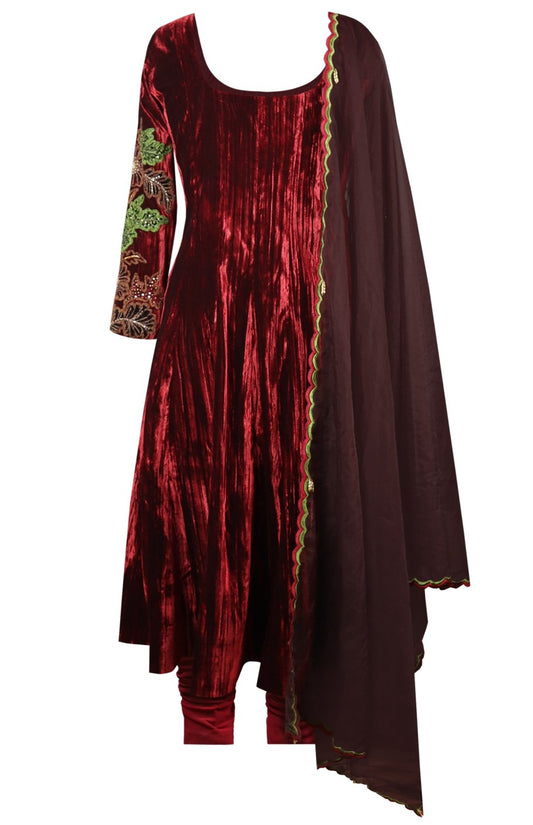 Maroon Appliqué Embroidery Crinkled Anarkali