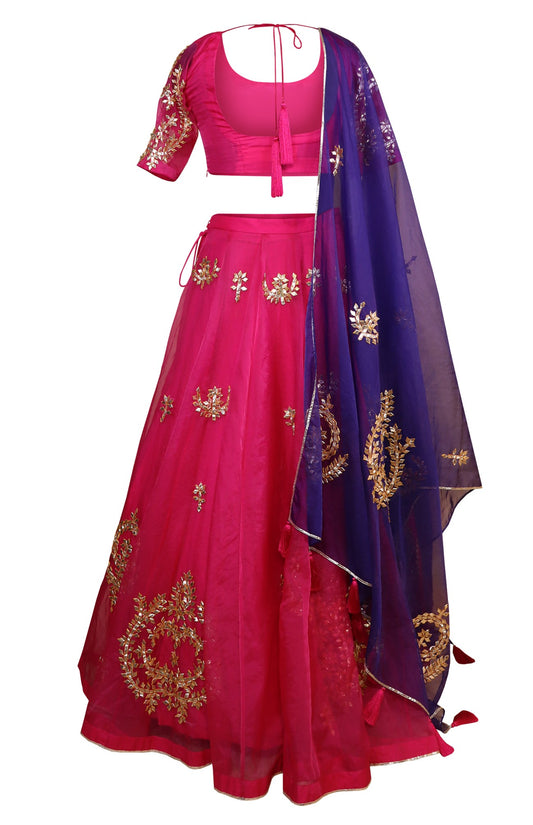 Ready To ShipMagenta Organza Lehnga Choli With Gota Pati Embroidery