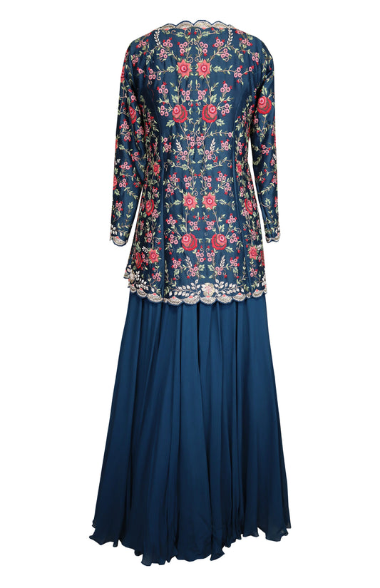 Navy Embroidered Jacket With Gown