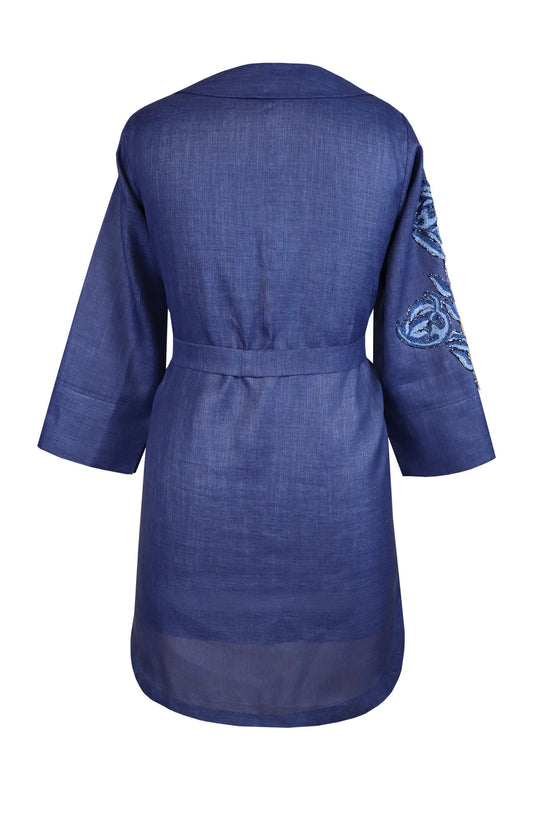 Navy Linen Top With Belt