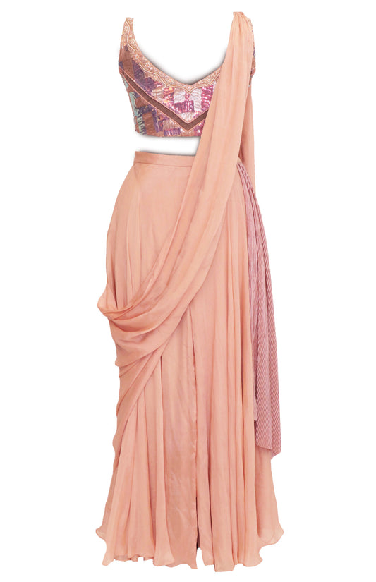 Nude Peach Chinon Chiffon Draped Sharara With Holographic Blouse