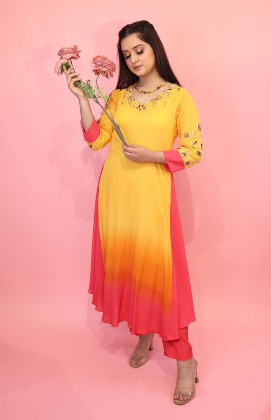 Ombré Chiffon Anarkali With Sequins Embroidery