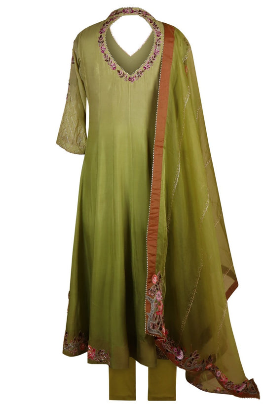 Ready To ShipsOmbré Anarkali With Floral Embroidery - OLD ROSE