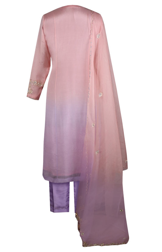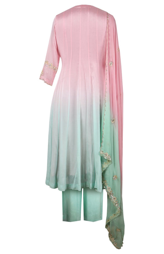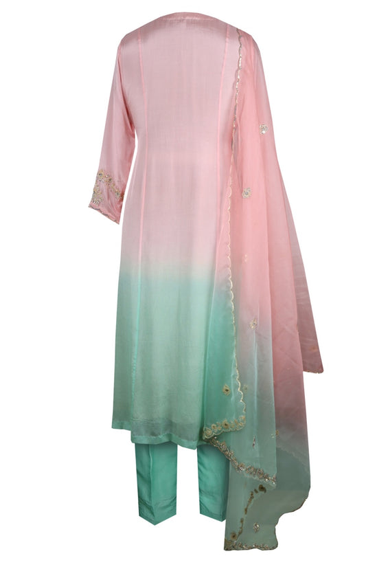 Ready To ShipOmbré Chiffon Suit With Sequins Embroidery - BLUSH/MINT