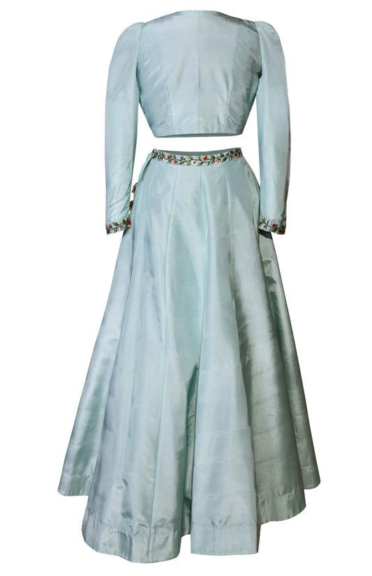 Ready To ShipsPowder Blue Cropped Jacket With Lehnga
