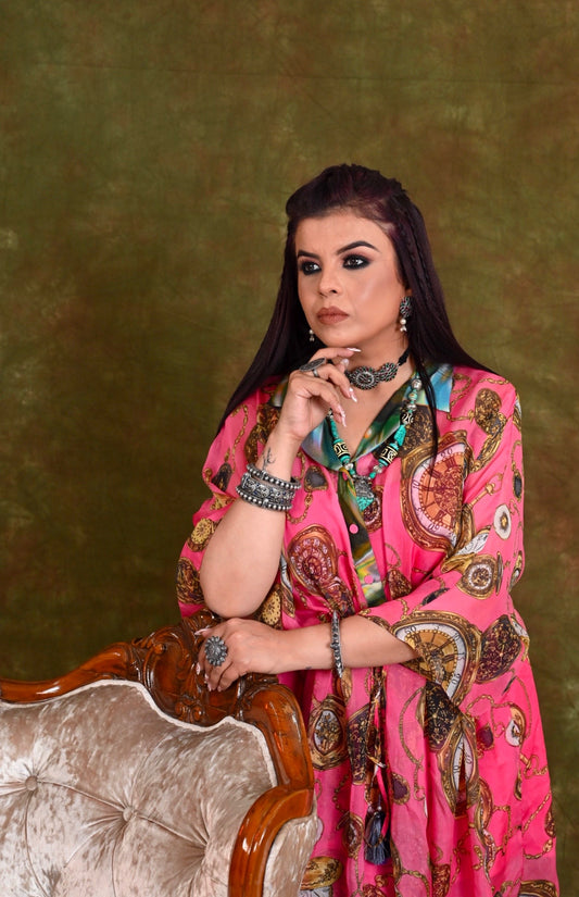 Printed Silk Chiffon Kaftan Set
