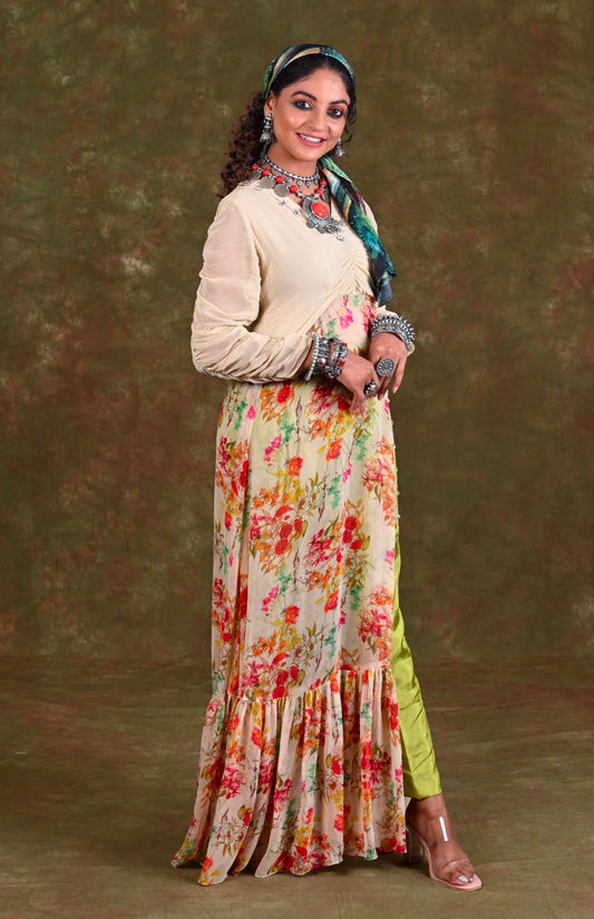 Printed Georgette Maxi Dress With Pants