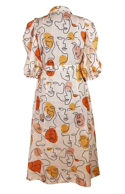 Printed Linen Midi Dress