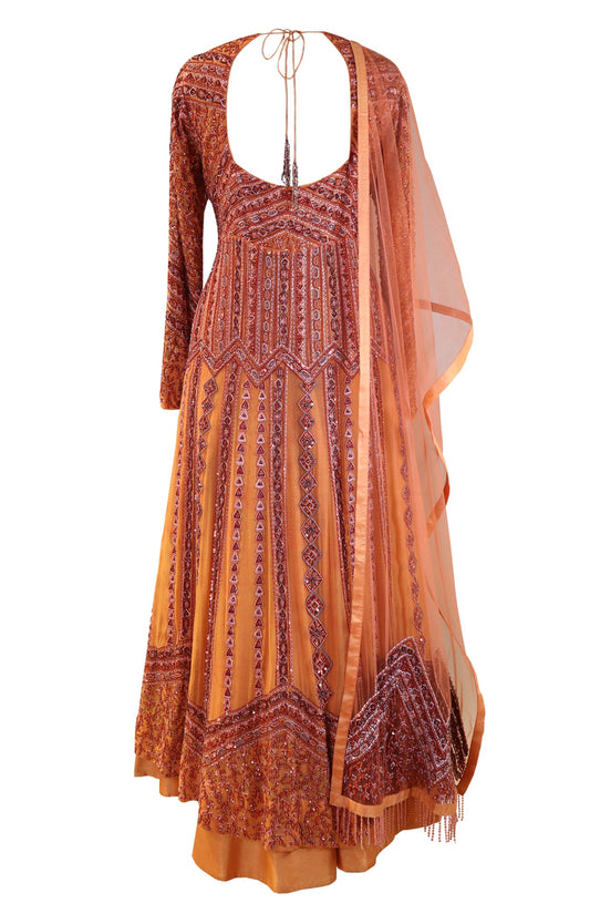 Tone On Tone Embroidery Achkan With Lehnga - ORANGE