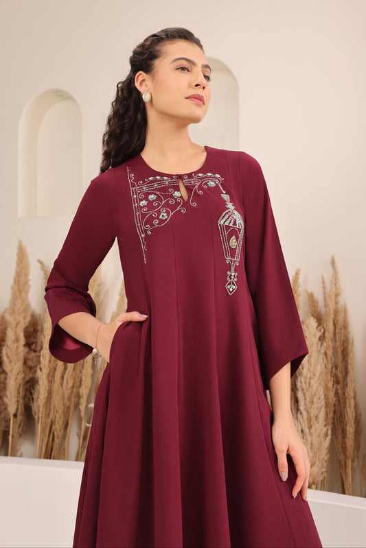 Ready To ShipsSconce Anarkali Kurta Set - WINE