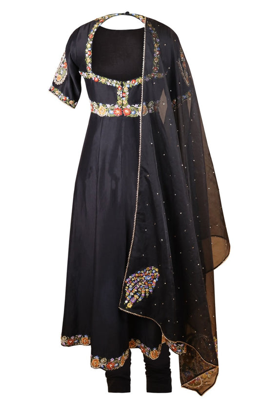 Blush Asymmetric Achkan With Kora Silk Skirt