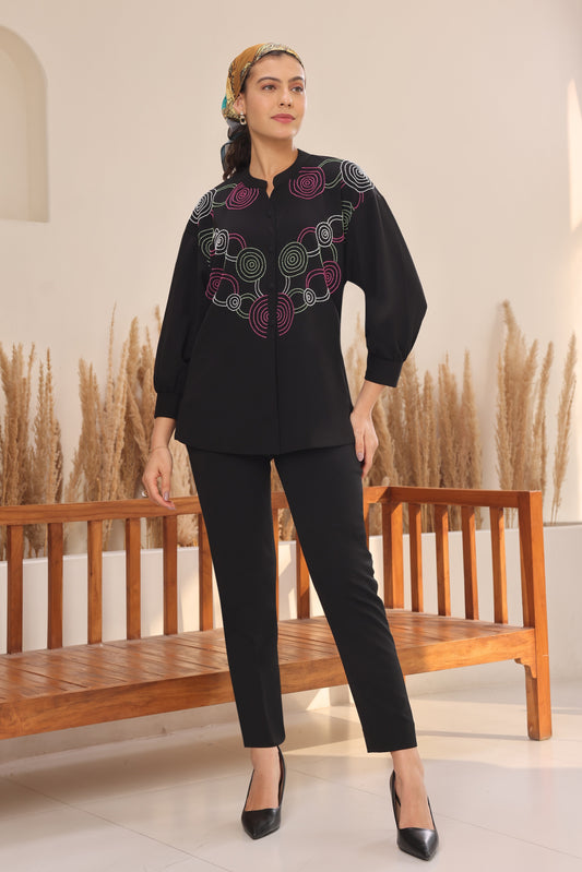 Glasswing Split Button Co-ord Set - BLACK