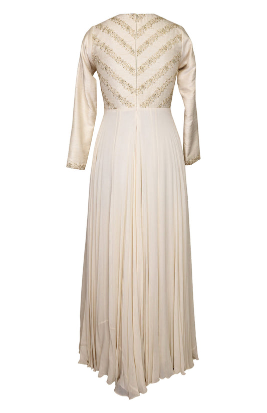 Ready To ShipsCrème Chevron Embroidery Georgette Maxi Gown