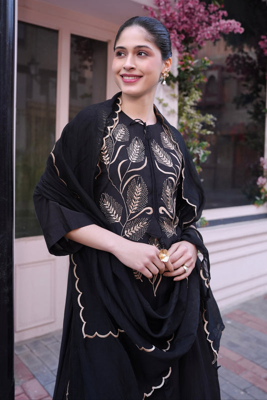 Ready To ShipsSpike Mul Short Anarkali With Sharara - BLACK