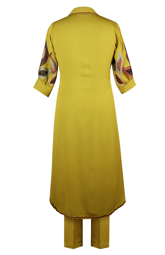 Jacket Style Kurta Set With Daisies - MANGO YELLOW