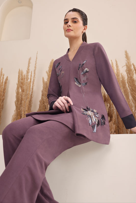 Ready To Ship3D Leaves Embroidery Dual Shade Kurta Set - MAUVE