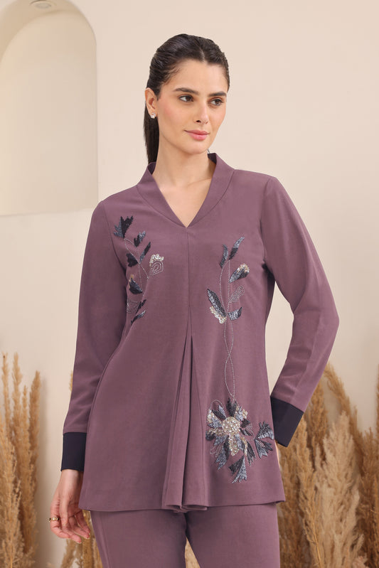 Ready To ShipsDaisy Co-ord Set With Shawl Collar - FIG
