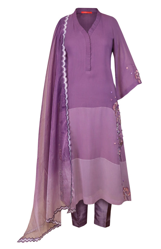 Ready To ShipsLilac Georgette Suit With White Embroidery