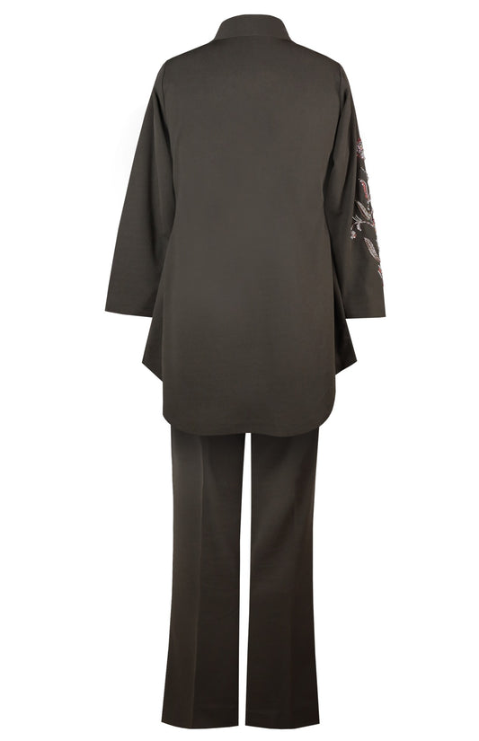 Bugs Embroidery Asymmetric Woollen Kurta Set