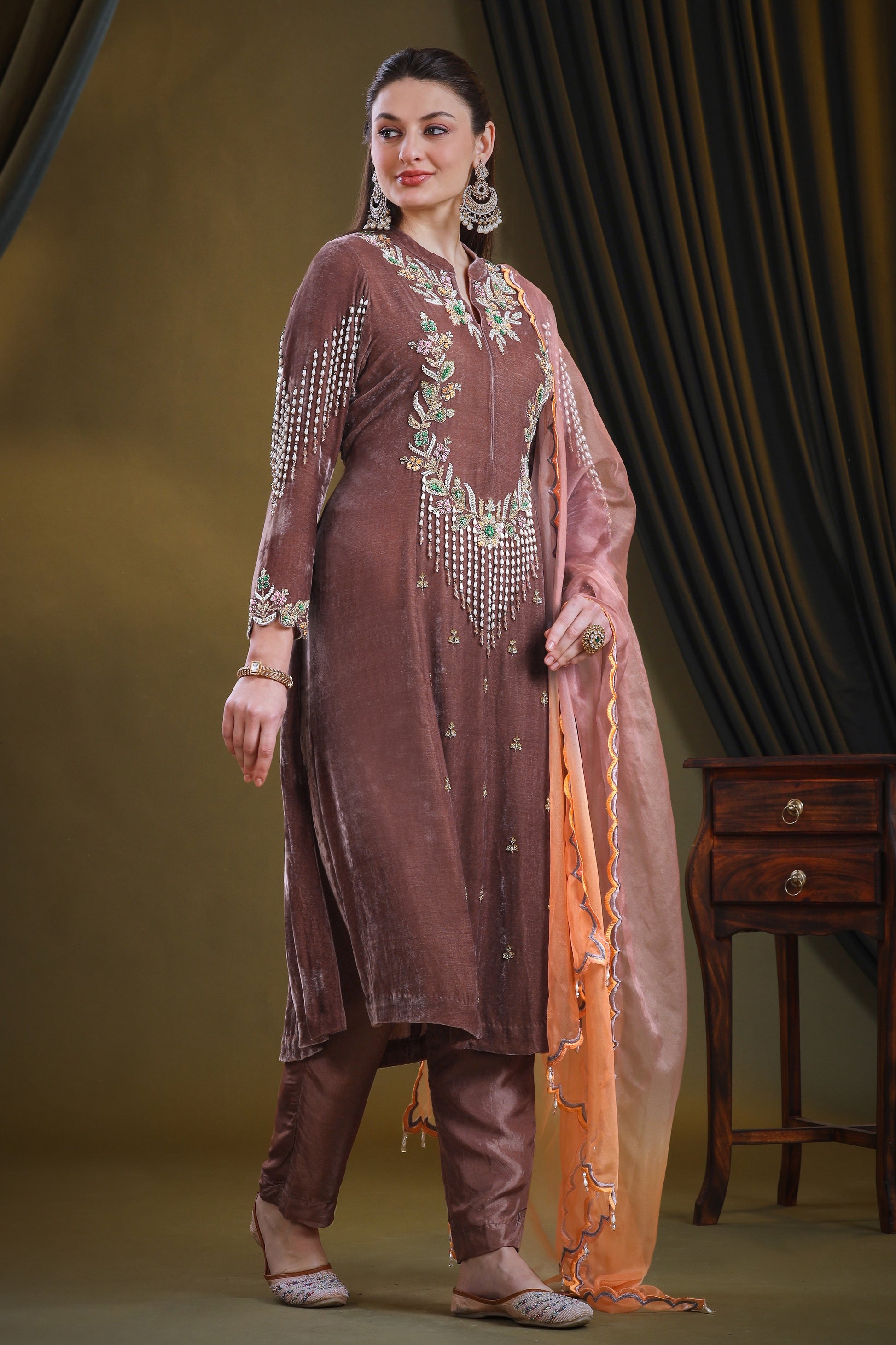 Fabric: Suit – Velvet | Pants - Silk | Dupatta – Organza